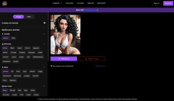 • AI-Generated Hentai & NSFW Images – Users can input detailed prompts and modify attributes to generate unique AI-rendered images.