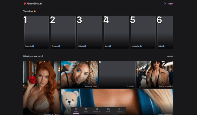 • Trending AI Companions – Browse and connect with popular AI characters like Sophia, Emma, Olivia, and Ava.