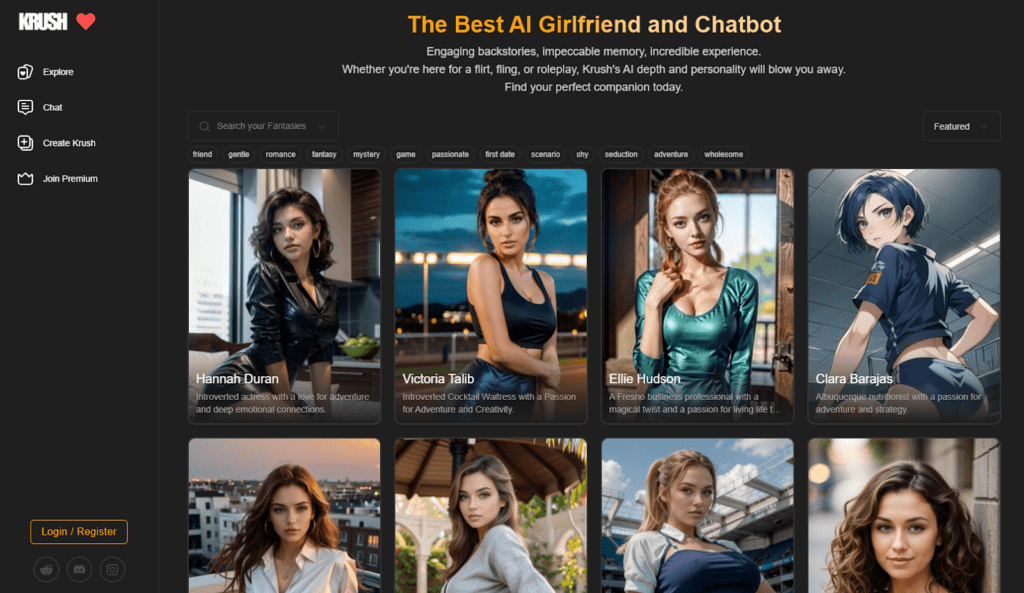 What truly makes Krush shine is its proprietary AI—not based on ChatGPT or open-source models, but built from scratch with lifelike personas and evolving personalities.